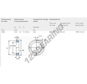 This lock nut KM29-SKF with an inside diameter of 145mm, an outside diameter of 190mm and a thickness of 24mm.