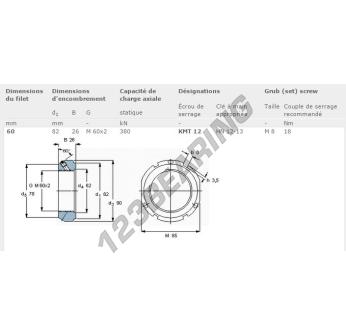 This lock nut KMT12-SKF with an inside diameter of 60mm, an outside diameter of 82mm and a thickness of 26mm.