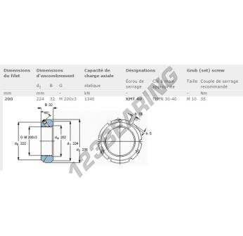 This lock nut KMT40-SKF with an inside diameter of 200mm, an outside diameter of 224mm and a thickness of 32mm.