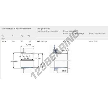 The Adapter Sleeve, known as AH24030-SKF SKF, has an inner diameter of 145 mm, an outer diameter of 150 mm and a thickness of 90 mm.
