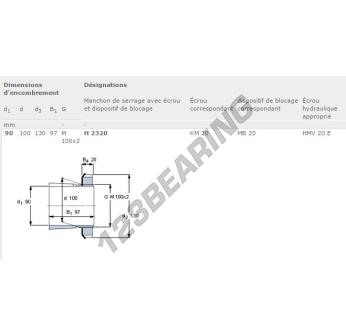 The Adapter Sleeve, known as H2320-SKF SKF, has an inner diameter of 90 mm, an outer diameter of 130 mm and a thickness of 97 mm.