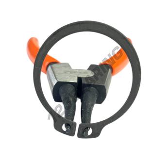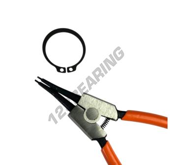 Straight external circlip pliers made of steel.
