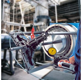 The SKF Hydraulically Assisted Heavy Duty Jaw Puller TMHP 30/350 is a powerful puller for dismounting large bearings and components. The self-centring puller, unique pantograph system and handling options make the puller safe and easy to use. The combination of a spindle and a hydraulic cylinder helps to mount the puller quickly. The SKF TMHP 30/350 is supplied in a complete ready-to-use set with hydraulic pump, oil and connections.