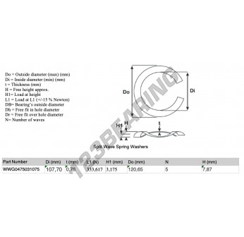The Split Wave Spring Washer with the reference SWSW-120.65-107.70-0.76-5 has an inner diameter of 107.7 mm and a thickness of 0.76 mm. It is made of STEEL.