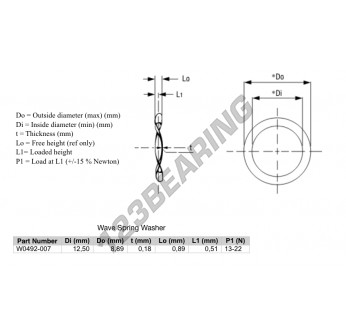 The Wave Spring Washer with the reference WSW-12.5-8.89-0.18 has an inner diameter of 8.89 mm and a thickness of 0.18 mm. It is made of STEEL.