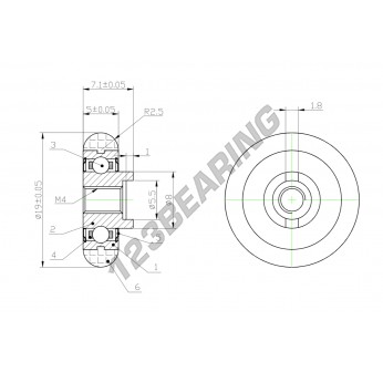 The Castor Bearing, known as 605-2RS-3.5-RW1 Generic, has an inner diameter of 3.5 mm, an outer diameter of 19 mm and a thickness of 5 mm.