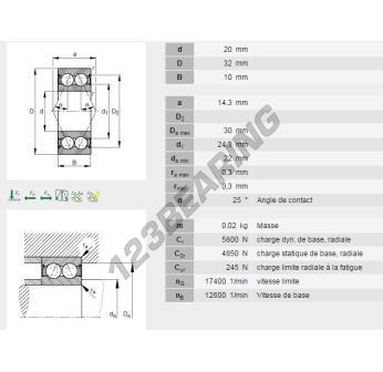 The Deep Groove Ball Bearing, known as 3804-2Z-INA from the brand INA, has an inner diameter of 20 mm, an outer diameter of 32 mm and a thickness of 10 mm.