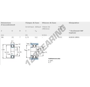 The Deep Groove Ball Bearing, known as 61810-2RS1-SKF SKF, has an inner diameter of 50 mm, an outer diameter of 65 mm and a thickness of 7 mm.