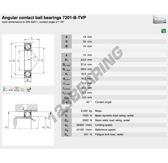 The Deep Groove Ball Bearing, known as 7201-B-XL-TVP-FAG FAG, has an inner diameter of 12 mm, an outer diameter of 32 mm and a thickness of 10 mm.