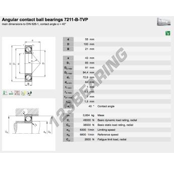 The Deep Groove Ball Bearing, known as 7211-B-XL-TVP-FAG FAG, has an inner diameter of 55 mm, an outer diameter of 100 mm and a thickness of 21 mm.