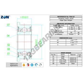 The Deep Groove Ball Bearing, known as F694-ZZ-ZEN ZEN, has an inner diameter of 4 mm, an outer diameter of 11 mm and a thickness of 4 mm.
