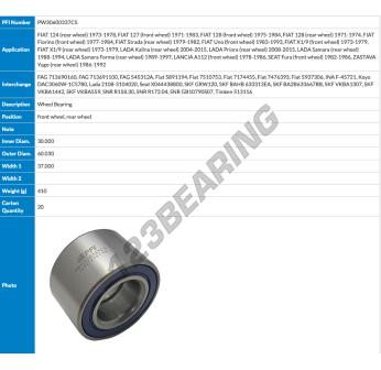 The Deep Groove Ball Bearing, known as PW30600337CS-PFI PFI, has an inner diameter of 30 mm, an outer diameter of 60 mm and a thickness of 37 mm.