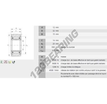 The Track Roller, known as NATR12-INA INA, has an inner diameter of 12 mm, an outer diameter of 32 mm and a thickness of 15 mm.