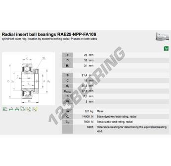 The RAE25-XL-NPP-FA106-INA INA Replacement Insert measures 25 mm inside diameter, 52 mm outside diameter and 31 mm in thickness. It is made of cast iron.