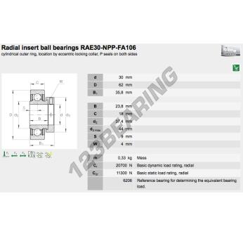 The RAE30-XL-NPP-FA106-INA INA Replacement Insert measures 30 mm inside diameter, 62 mm outside diameter and 35.8 mm in thickness. It is made of .