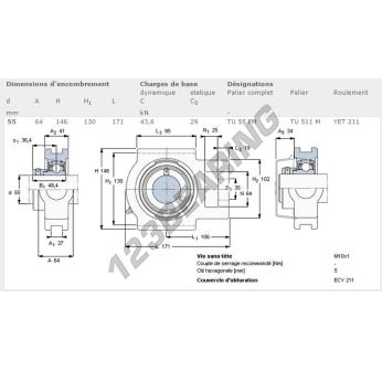 The Cast Housed Bearing - 1 Bolt which is known by TU55-FM-SKF SKF has a bore diameter of 55 mm. This reference is made of cast iron and the type of clamping is by .