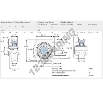 The Cast Housed Bearing - 1 Bolt which is known by TU55-TF-SKF SKF has a bore diameter of 55 mm. This reference is made of cast iron and the type of clamping is by .