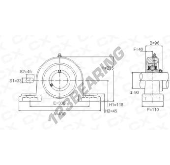 The Housed Bearing - 2 Bolts known as UCP318 Generic has a shaft diameter of 90 mm and a fixing spacing of 330 mm. This part number is produced in cast iron and the tightening type is .