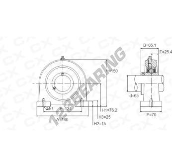 The Housed Bearing - 2 Bolts known as UCPA213 Generic has a shaft diameter of 65 mm and a fixing spacing of 124 mm. This part number is produced in cast iron and the tightening type is .