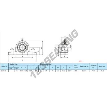 The Housed Bearing - 2 Bolts known as UCPX15 Generic has a shaft diameter of 75 mm and a fixing spacing of 229 mm. This part number is produced in cast iron and the tightening type is .