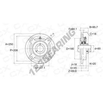 The Housed Bearing - 4 Bolts known as UCFC217 Generic has a shaft diameter of 85 mm and a fixing spacing of 147.1 mm. This part number is produced in cast iron and the tightening type is .