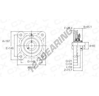 The Housed Bearing - 4 Bolts known as UCFX12 Generic has a shaft diameter of 60 mm and a fixing spacing of 149 mm. This part number is produced in cast iron and the tightening type is .