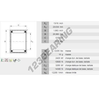 The Drawn Cup Needle Roller Bearing, known as BCE138-INA INA, has an inner diameter of 20.64 mm, an outer diameter of 26.99 mm and a thickness of 12.7 mm.