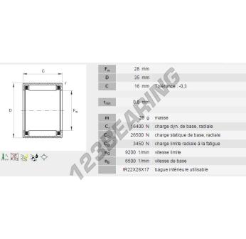 The Drawn Cup Needle Roller Bearing, known as HK2816-BK-INA INA, has an inner diameter of 28 mm, an outer diameter of 35 mm and a thickness of 16 mm.