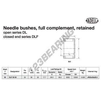 The Other Bearing, known as DLF3020-NADELLA NADELLA, has an inner diameter of 30 mm, an outer diameter of 38 mm and a thickness of 20 mm.