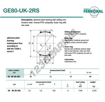 The Rod End Geew known as GE80-UK-2RS-DURBAL DURBAL has an inside diameter of 80 mm, an outside diameter of 120 mm and a thickness of 45 mm.