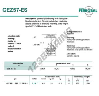The Rod End Geew known as GEZ57-ES-DURBAL DURBAL has an inside diameter of 57.15 mm, an outside diameter of 90.488 mm and a thickness of 42.85 mm.