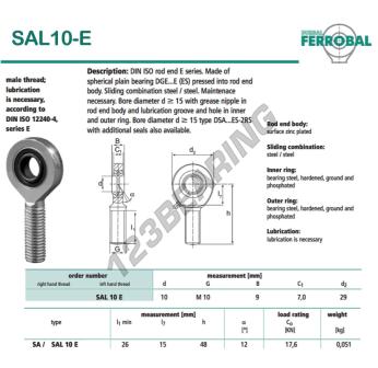 The Rod End Sa known as SAL10-E-DURBAL DURBAL has a screw thread of , an inner diameter of 10 mm, an outer diameter of 29 mm and a thickness of 9 mm.