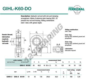 The Rod End Tapr known as GIHL-K60-DO-DURBAL DURBAL has an inner diameter of 60 mm, an outer diameter of 130 mm and a thickness of 50 mm.