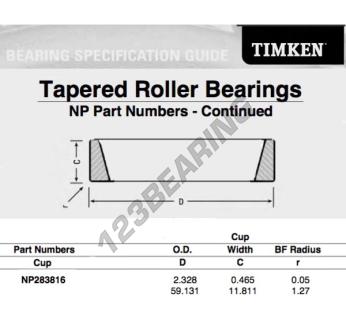 The Raw Cup, known as NP283816-TIMKEN TIMKEN, has an inner diameter of mm, an outer diameter of 59.131 mm and a thickness of 11.811 mm.