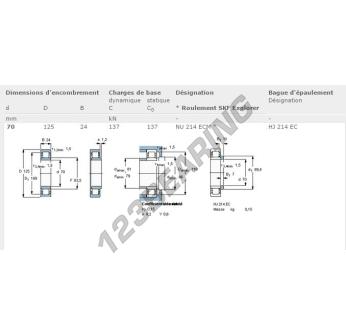 The Roller Bearing, known as NU214-ECM-SKF SKF, has an inner diameter of 70 mm, an outer diameter of 125 mm and a thickness of 24 mm.
