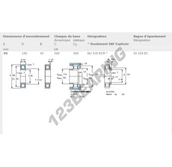 The Roller Bearing, known as NU318-ECM-SKF SKF, has an inner diameter of 90 mm, an outer diameter of 190 mm and a thickness of 43 mm.