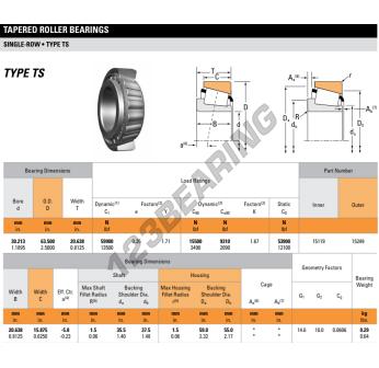 The Tapered Roller Bearing, known as 15119-15249-TIMKEN TIMKEN, has an inner diameter of 30.21 mm, an outer diameter of 63.5 mm and a thickness of 20.64 mm.