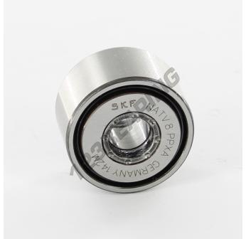 The Yoke Type Track Roller, known as NATV8-PPX-SKF SKF, has an inner diameter of 8 mm, an outer diameter of 24 mm and a thickness of 14 mm.
