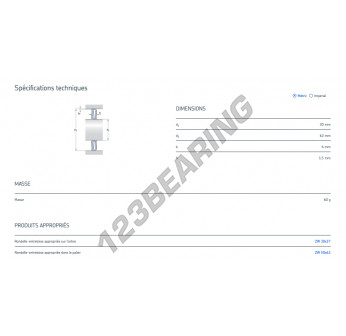 The Sealing Washer with the reference RDL-30X62X6-NBR-SKF has an inner diameter of 30 mm, an outer diameter of 62 mm and a thickness of 6 mm. It is made of NBR.